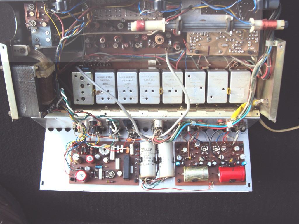 These Arena tuner-amplifiers had a quaintly old-fashioned construction compared with the contemporanous products from Japan, the Arena featuring multiple circuit boards and using the traditional tuned IF transformers, while the Japanese were already constructing complete tuner-amplifiers on large single PCBs and using ceramic IF filters. Early T2600 units had six separate PCBs with internal heatsinks, and used a conventional tuning capacitor (5)