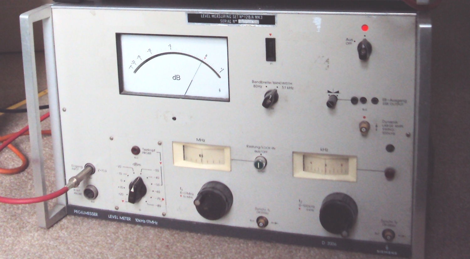 The Siemens D2006 Pegelmesser (Selective Level Meter) is a solid state instrument dating from artound 1968. There is a companion Pegelsender (level generator) W2006. They cover the frequency range 10kHz - 17MHz