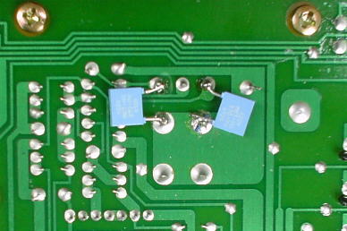 Solder two cap's, value in the range 10 - 47nF (22nF is about optimum, a film type is recommended) in the positions shown, which is between the two data lines and ground.