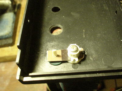 The power switch button bracket had broken, so I also fixed this, using a bit of old credit card: